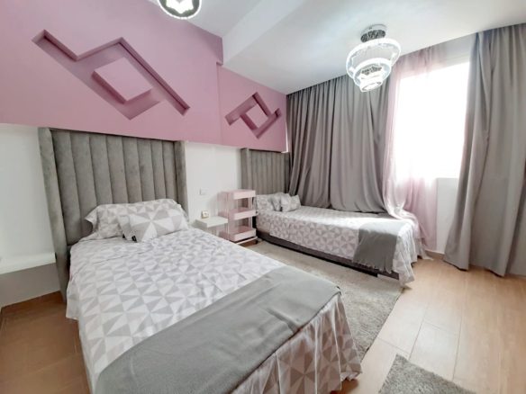 Appartement à la location vide Superficie :125m à Val fleuri, Résidence très calme, sécurisée avec ascenseur et place au parking 1 suite parentale avec dressing et salle de bain 1 chambre avec placard 2 autres salle de bain Une cuisine équipée avec four et plaque à gaz 2 salons avec terrasse Prix: 7500 dhs loyer + 500 dhs frais de syndic Pour plus d’informations svp:0611591125